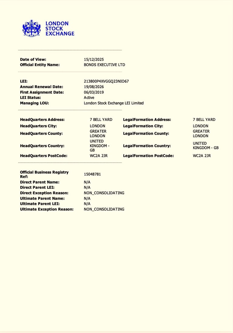BONDS EXECUTIVE LTD London Stock Exchange (LSEG) LEI